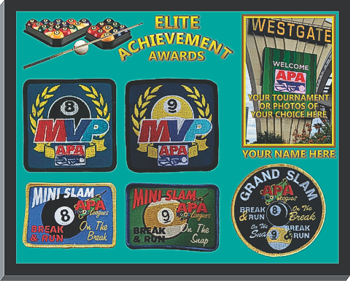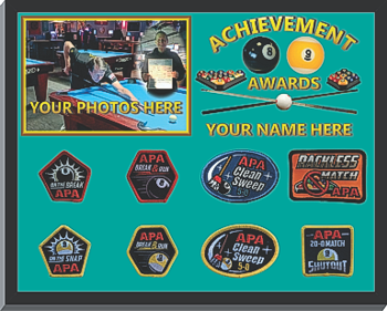 Now there's a way to proudly display your most coveted APA League Patches, arranged as a set in professional frames, personalized by you, to hang on your wall...
